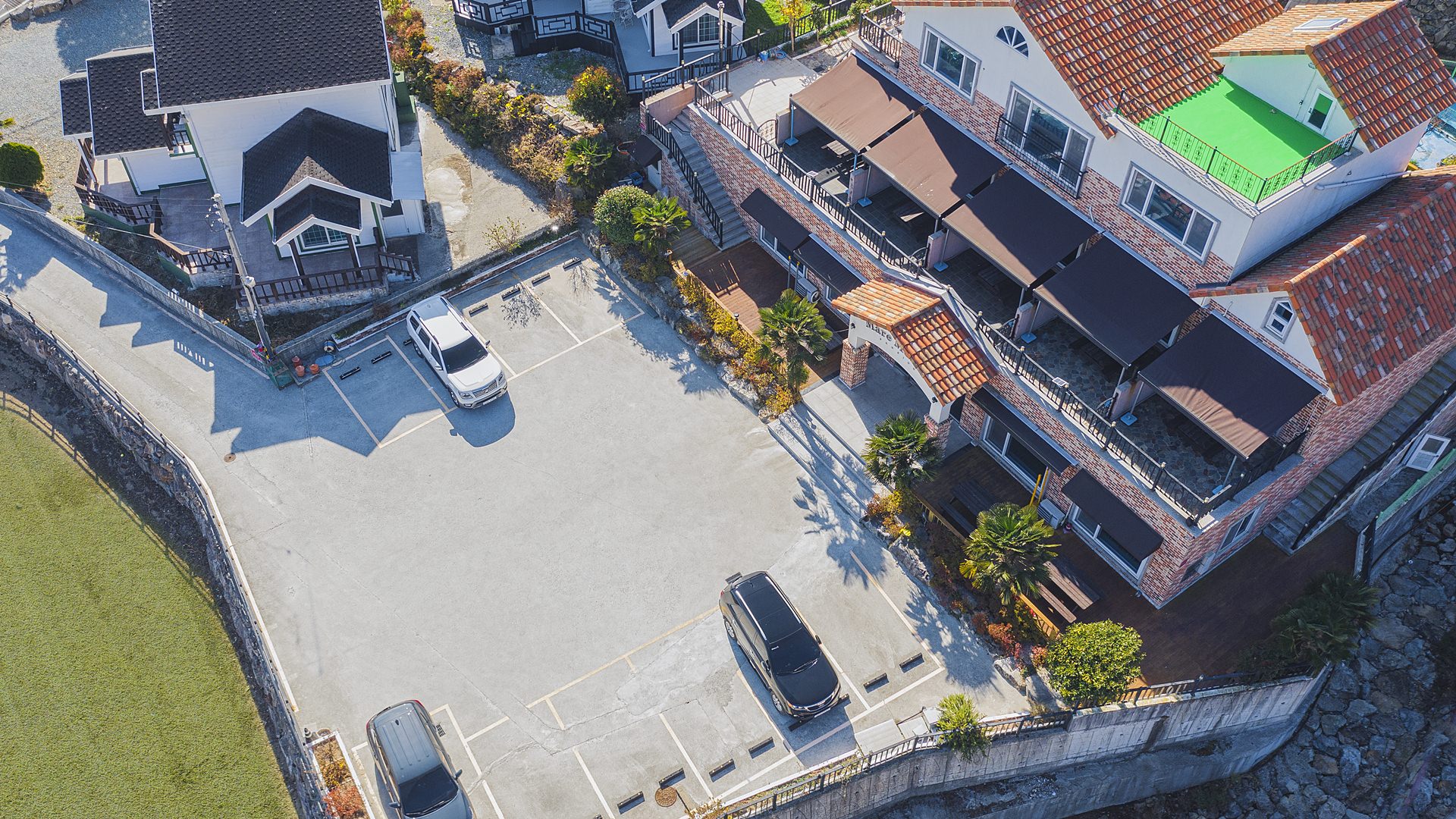 펜션 앞 단독 넓은 주차장이 마련되어 있습니다.