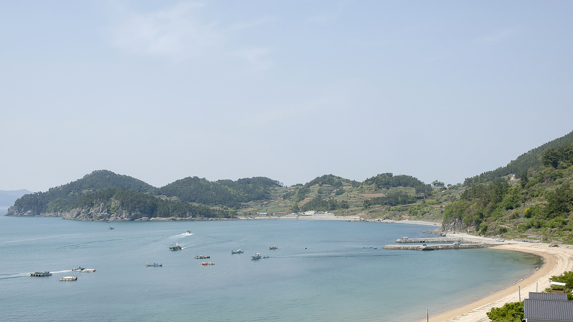내륙형 해안지대로 호수같이 조용한 분위기를 느낄 수 있으며, 해수욕장 서쪽 해안에는 효자의 전설이 얽힌 윤돌섬이 자리잡고 있습니다.