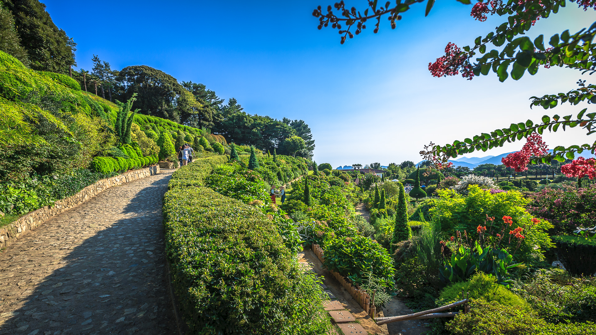 외도 해상농원은 30년 전 한 개인이 섬을 사들여 정성스럽게 관광농원으로 꾸며, 현재는 약 4만 5천여 평의 동백숲이 섬 전체를 덮고 있으며, 선샤인, 야자수, 선인장 등 아열대식물이 가득하고 은환엽유카리, 스파리티움, 마호니아 등 휘귀식물이 눈길을 끕니다. 편백나무 숲으로 만든 천국의 계단과 정상의 비너스 공원도 이채롭습니다.