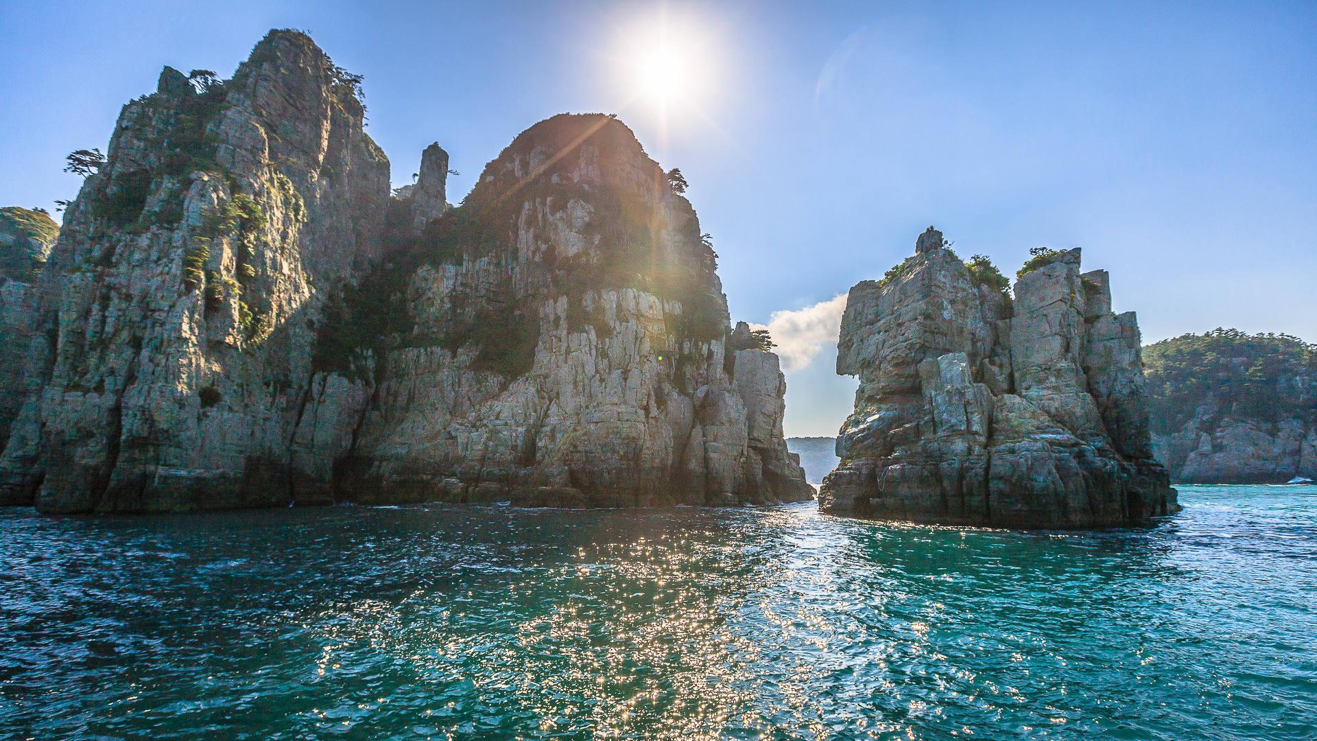 두개의 큰 섬으로 연접한 해금강은 한려해상 국립공원에 속하며 1971년 '명승2호'로 지정되었습니다.